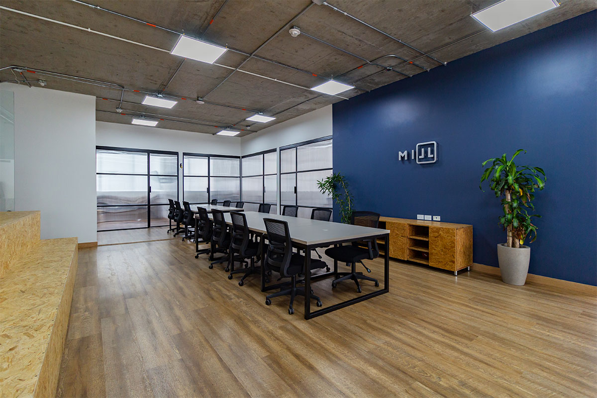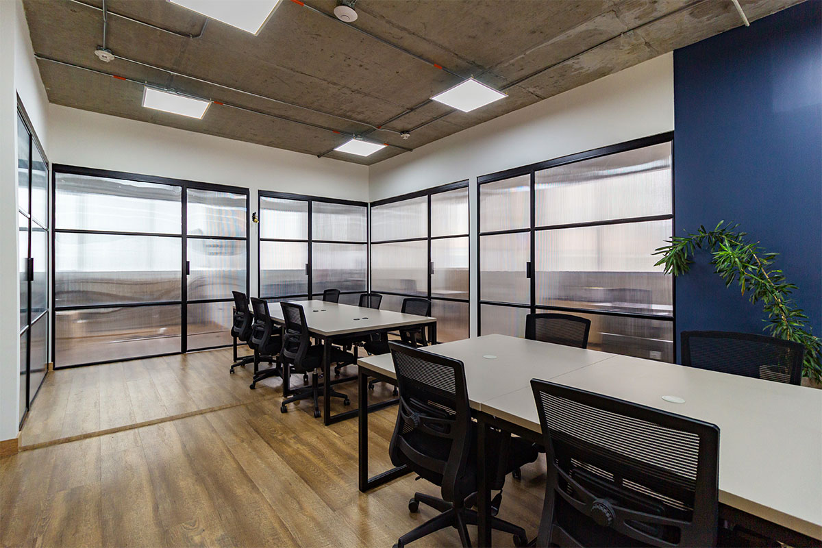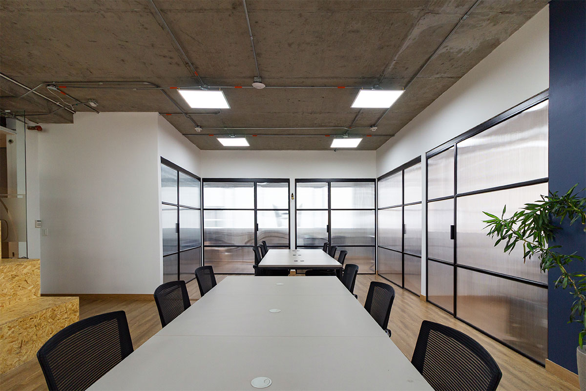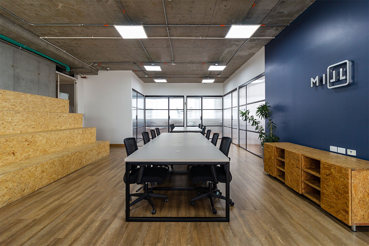 Espacio para pensar. Espacio para innovar. Espacio para co-crear. De esta manera es como se diseña una oficina para una generadora de ideas. Para este proyecto se plantean múltiples espacios para suplir la dinámica de una startup y sus necesidades, el programa consiste en un área de 180m2 de trabajo comunal que cuenta con salas de reunión (equipos y clientes), oficinas privadas de diferentes dimensiones para reuniones específicas, cafetería y espacio de snacks, además de espacios de trabajo no convencionales. La premisa para el desarrollo del proyecto con el cliente fue desarrollar una oficina de una manera rápida, económica y práctica. Espacio pre-pandemia para más de 40 personas de trabajo.